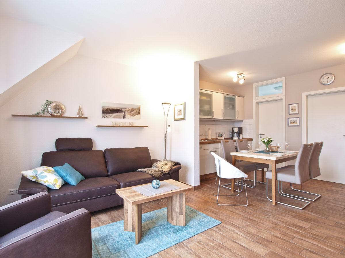 Die großzügige, helle 3-Raum-Wohnung liegt im 2.Obergeschoss, ist ca. 70m² groß und bietet viel Platz über 2 Etagen für 4-5 Personen. Die Wohnung wurde vom DTV mit 4 Sternen klassifiziert. Hier finden Sie Ruhe und Bequemlichkeit auf hohem Niveau für einen entspannten Urlaub. In einem mit Liebe und Geschmack gestaltetem Ambiente erleben Sie Komfort, dem es an nichts fehlt. Wir bieten Ihnen: