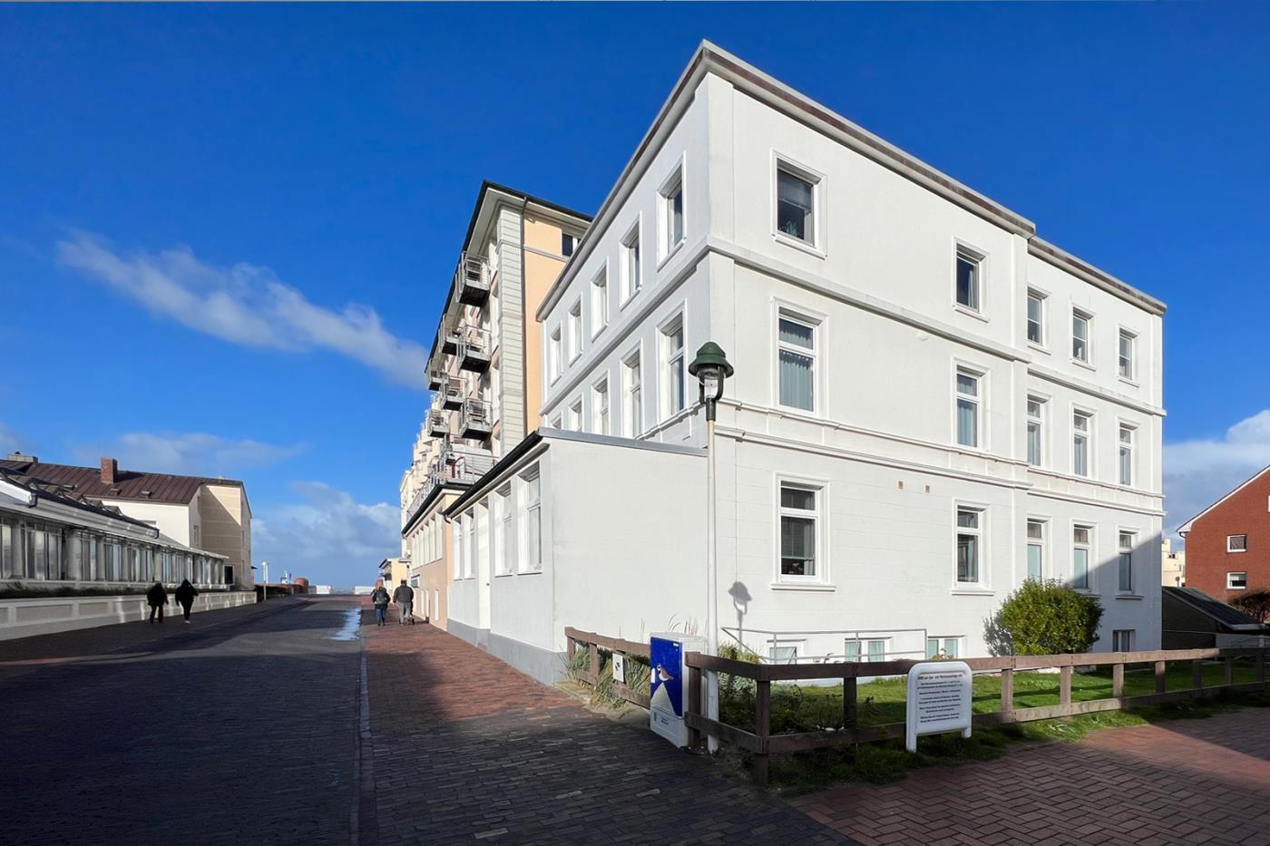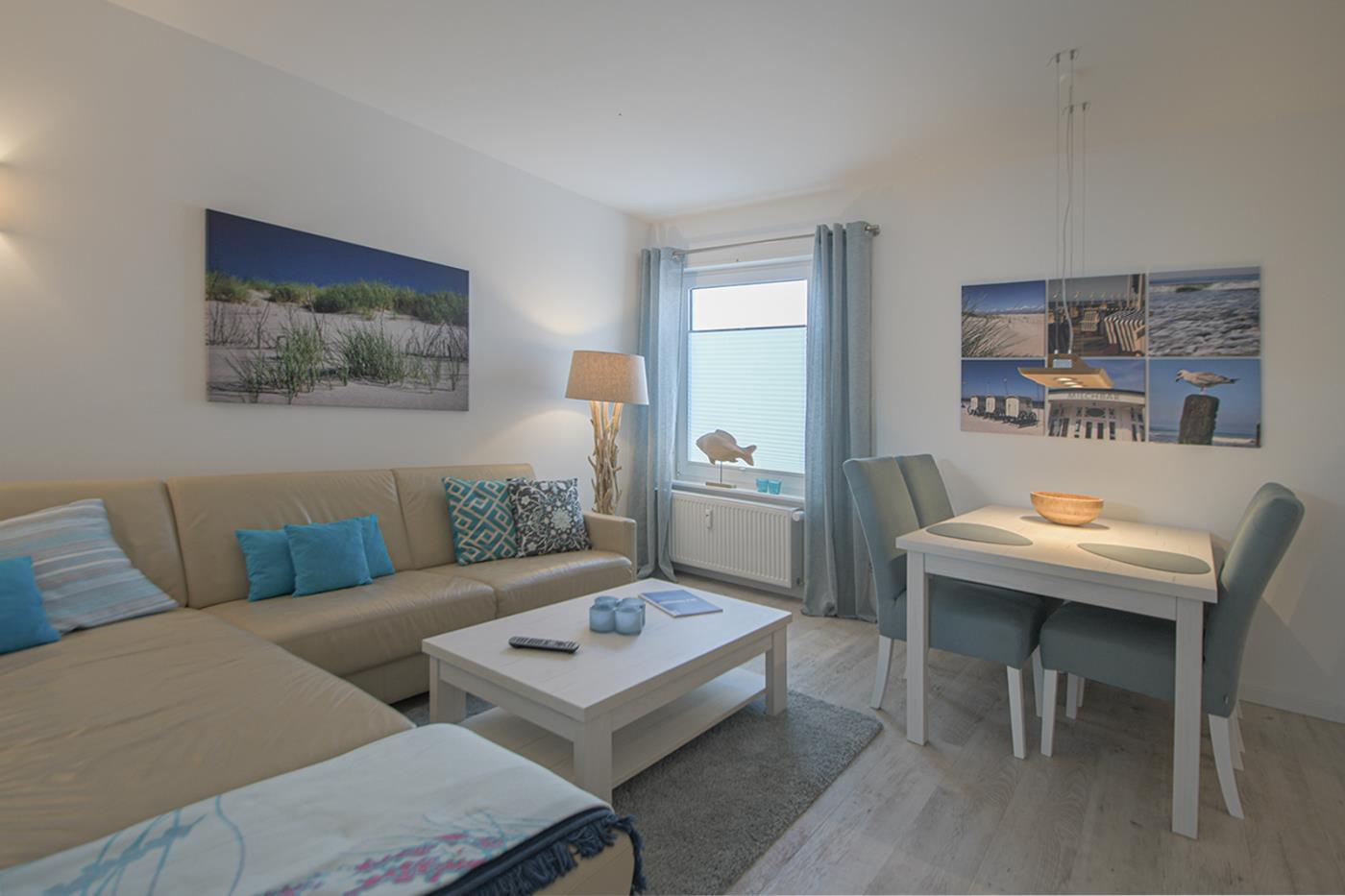 Liebevoll renovierte und modern eingerichtete Ferienwohnung in der 3.Etage, kein Aufzug vorhaden, für 2-4 Personen in begehrter Lage, nur wenige Meter von der Strandpromenade und zwischen der Milchbar und dem Surfcafe gelegen. Hier treten Sie ein und fühlen sich wohl. Der nächste Supermarkt ist nur 50 Meter entfernt. Perfekte Lage mit seitlichem Meerblick.