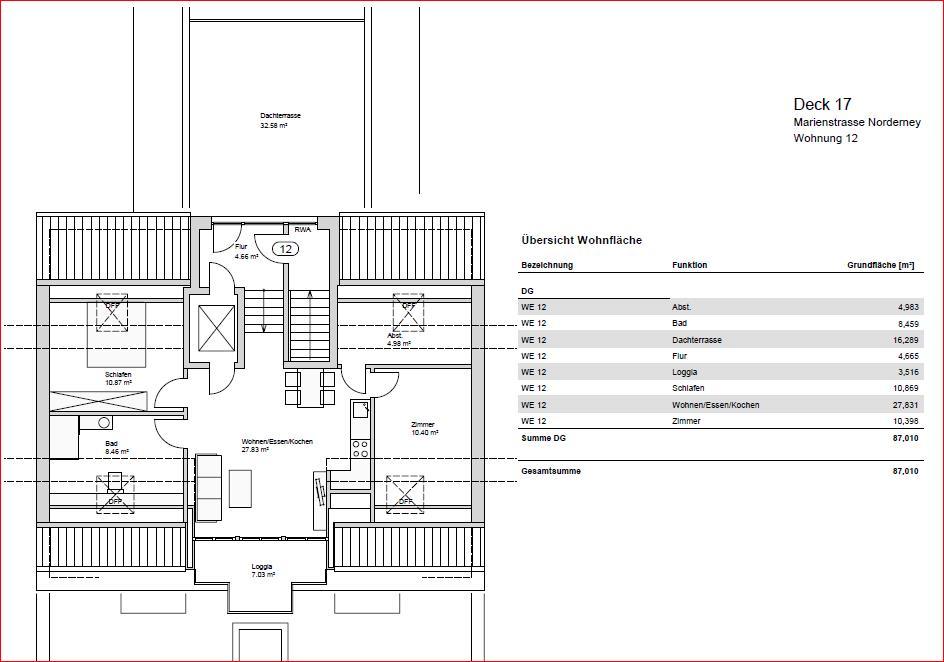 Es erwartet Sie ein großzügiger Wohnbereich mit offener Küche und Zugang zum Balkon, zwei Schlafzimmer und zwei Bäder mit Dusche und WC. Eines der Highlights dieser modernen Penthouse-Ferienwohnung ist die 28qm Dachterrasse.