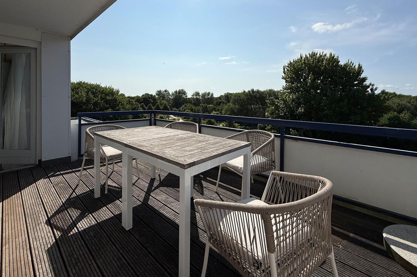 Große Dachterrasse mit Bestuhlung sowie eine kleiner Balkon