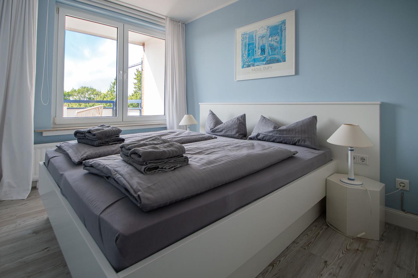 Ihre Ferienwohnung verfügt über insgesamt 3 Schlafzimmer. Ein Schlafzimmer mit Doppelbett und zwei Schlafzimmer mit EInzelbett.