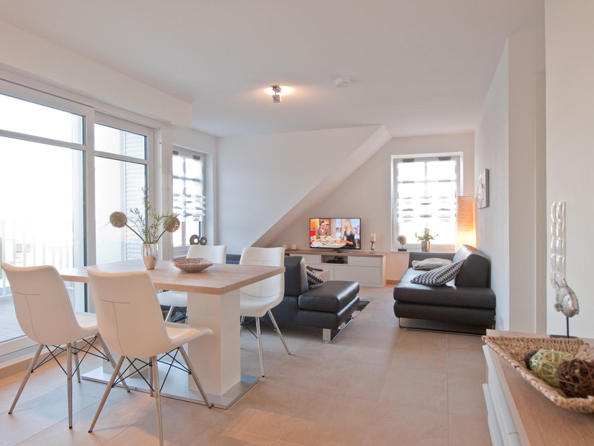 Zentral gelegene Neubau-Ferienwohnung für 4 Personen. Von hier aus erreichen Sie in 2 Minuten die Innenstadt und die Milchbar. Aufgeteilt in einen großen Wohnraum mit offener Küche, zwei Schlafzimmern sowie ein Bad und Balkon besticht diese Ferienwohnung durch Ihre schlichte Eleganz. Hier werden Sie sich garantiert wohlfühlen. Ihre Wohnung liegt im 3. OG und ist bequem über den hauseigenen Fahrstuhl zu erreichen.