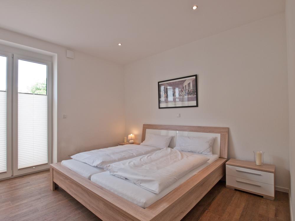 Diese Ferienwohnung verfügt über zwei Schlafzimmer, in einem ist ein Doppelbett vorhanden, in dem anderen finden Sie zwei Einzelbetten. Im großen Wohnbereich ist eine offene Küche inklusive Backofen, Kaffeepad-Maschine und Geschirrspüler untergebracht. Eine Essgruppe und eine gemütliche Sofalandschaft sind ebenfalls in diesem Raum untergrebracht. Das neue, moderne Badezimmer ist mit Dusche, Waschbecken und WC ausgestattet.