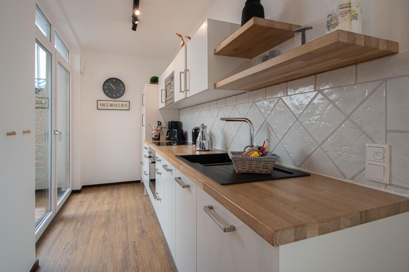 Küche mit Spülmaschine, Backofen, Mikrowelle, Kaffeemaschine