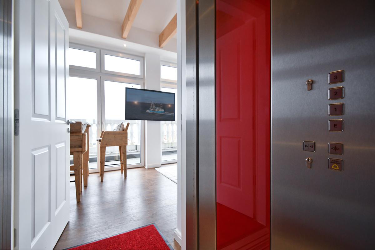 Über den Dächern von Norderney wartet dieses exklusive Penthouse für 2-3 Personen auf Sie. Mit dem modernen Aufzug gelangen Sie direkt in Ihr großzügiges Penthouse. Umrandet von einer eindrucksvollen Dachterrasse mit Strandkorb und Loungeecke bietet ihr lichtdurchflutetes Domizil einen großzügigen Wohnbereich mit offener Küche, ein Schlafzimmer, ein Bad mit großer ebenerdiger Dusche sowie ein Ankleidezimmer. Das offene Balkenwerk, die hohen Decken und die bodentiefen Fenster schaffen in der gesamten Ferienwohnung ein offenes und angenehmes Wohngefühl.