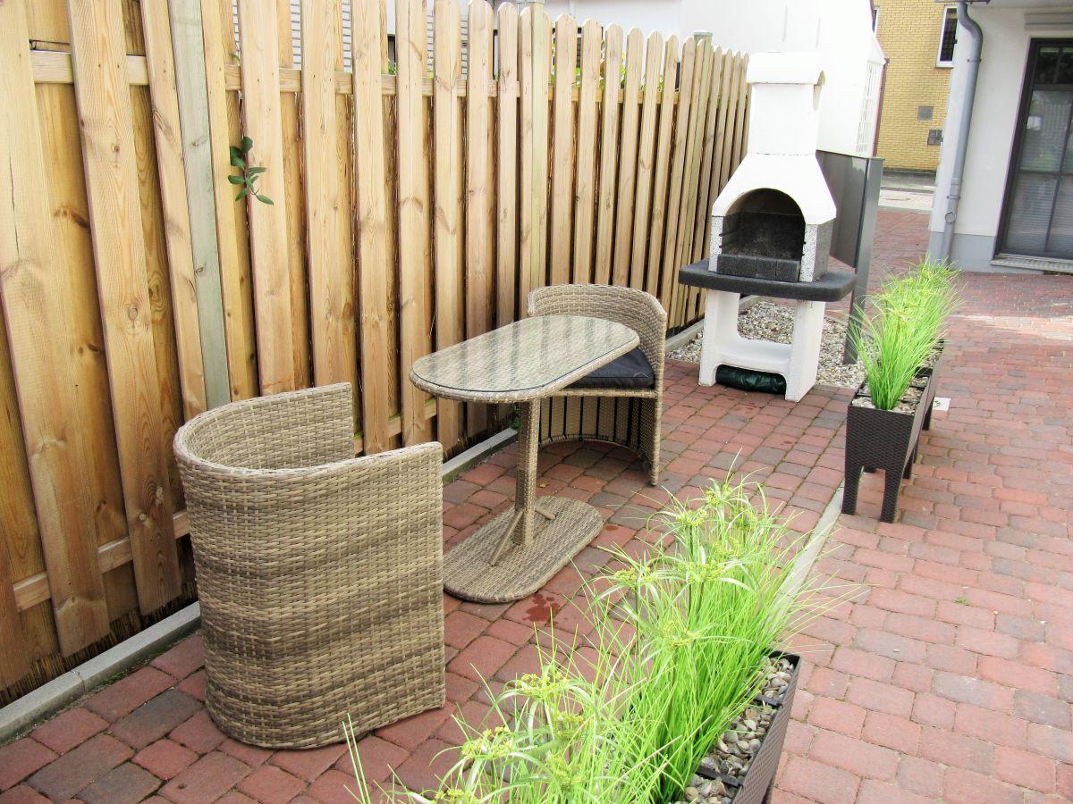 Die bevorzugte Lage ist ideal, wenige Gehminuten zum Kurplatz (City), 150m zum Weststrand, 100m zum Thalasso Bad und 500m zur Milchbar. Entspannen oder grillen kann man auch auf der für die Wohnung ausgewiesenen Terrasse, ausgestattet mit einem Strandkorb, Terrassenmöbel und einem Grillkamin.