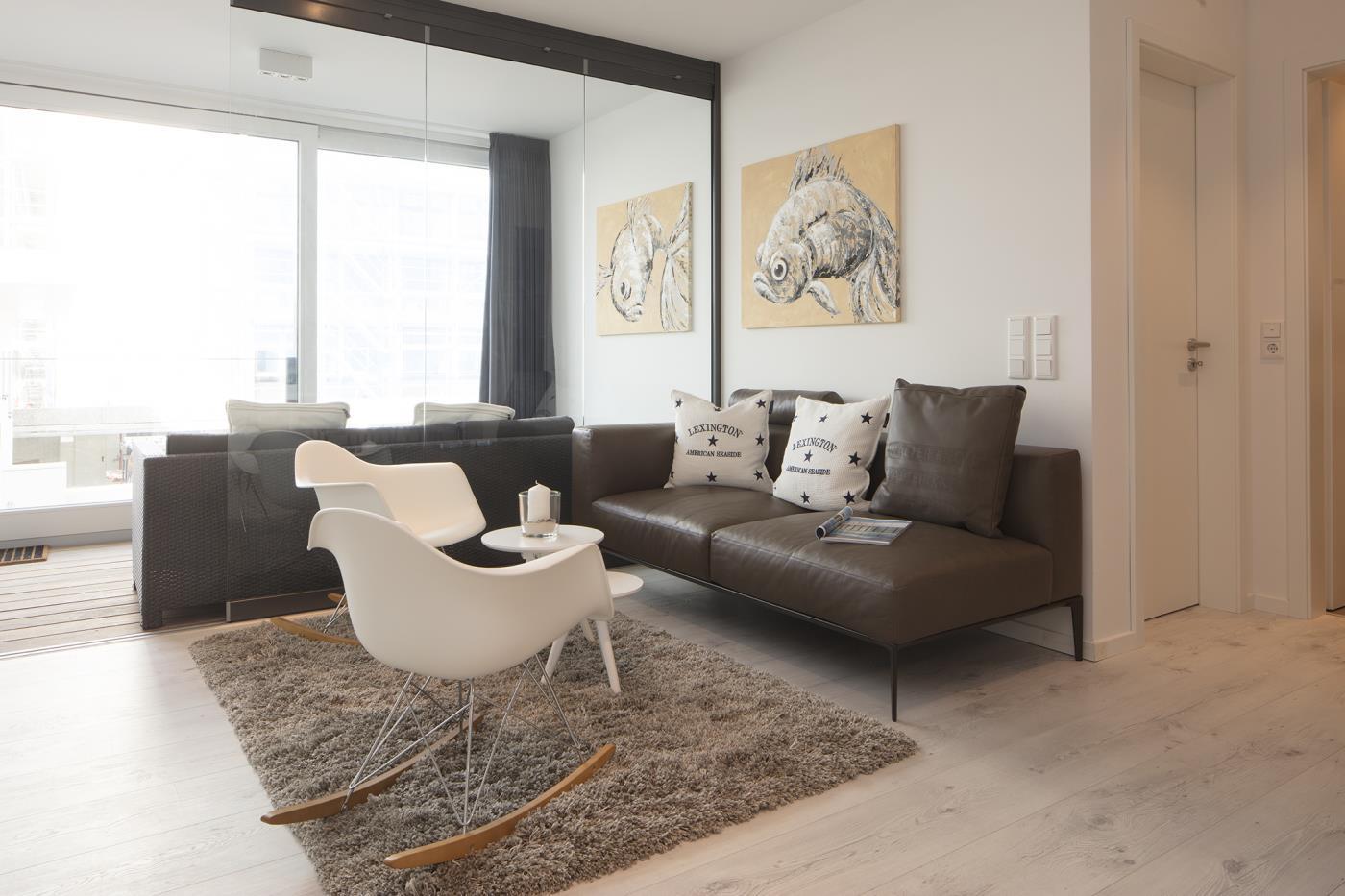 Heller, großzügiger Wohnbereich mit bodentiefen Fenstern und Zugang zum Wintergarten Hier finden Sie hier eine gemütliche Lounge-Ecke sowie einen Essbereich für 4 Personen. Zur technischen Ausstattung gehört ein großer LED-Flachbildfernseher, eine Bose-Musikanlage und W-Lan.