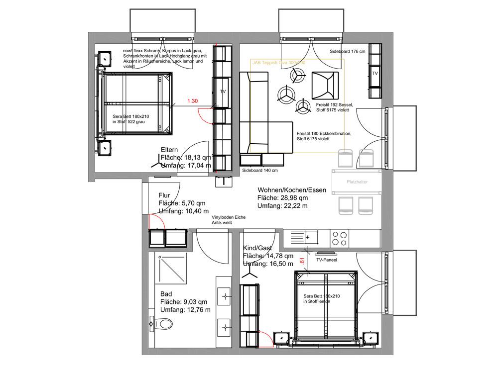 Im Wohnbereich finden Sie eine gemütliche Sofaecke mit Sessel, höhenverstellbaren Wohnzimmertisch, einen 46 Zoll Flachbildfernseher mit BlueRay-Player und einer Kompaktanlage.